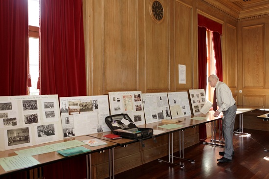 Příprava výstavy o historii Svazu spolků, v pozadí Jiří Kraus