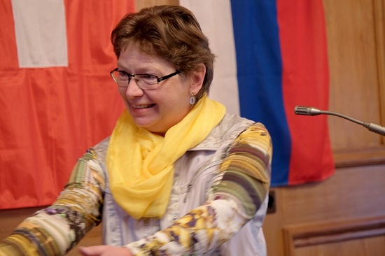 Jednatelka Svazu spolků Helena Springinsfeld při zdravici
